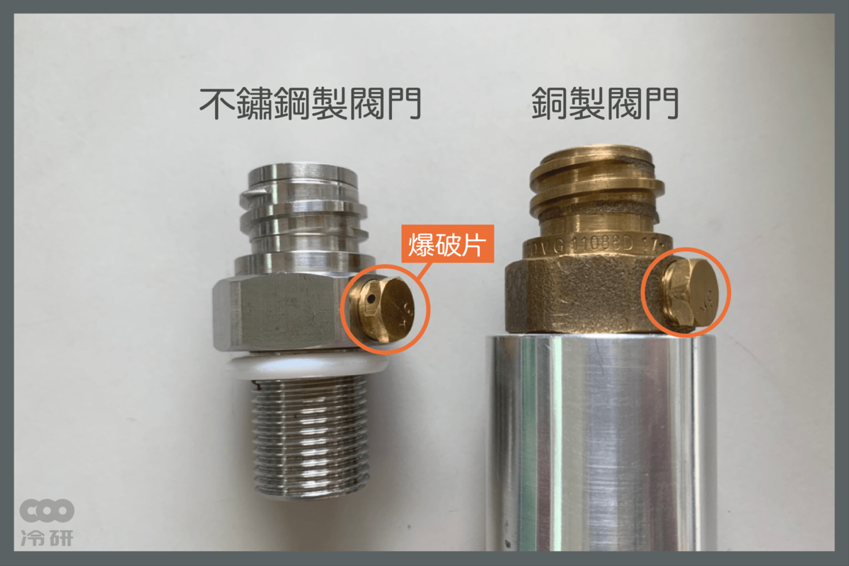 *爆破片零件為鋼瓶的第一道安全把關,無法以不鏽鋼取代。