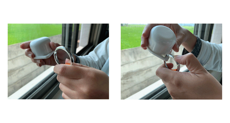 為了讓大家可以自由地更換喜歡的吊飾,冷研附贈的手提吊飾可以非常簡單的掛上、取下。